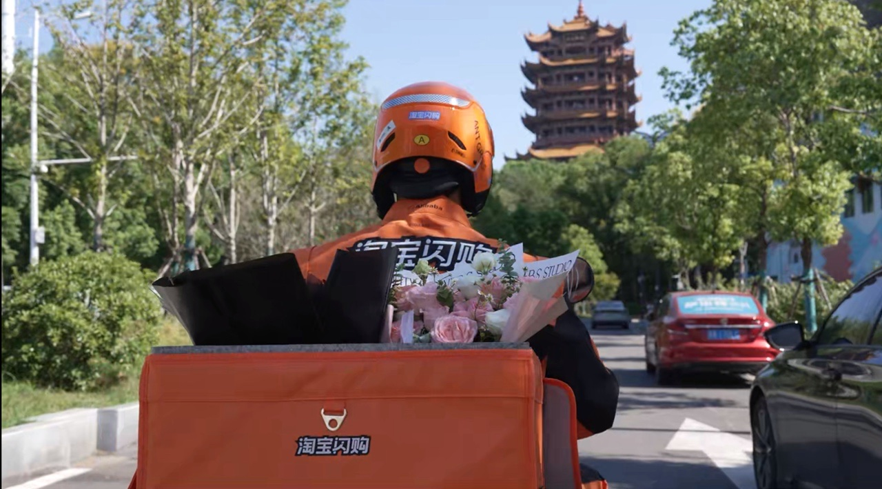 8月29日一早,从北方的哈尔滨、延吉,到南方的广州、西双版纳,多个城市的淘宝闪购骑士化身七夕“新鹊桥”,正以最快的速度将包扎好的花束送到用户手中。