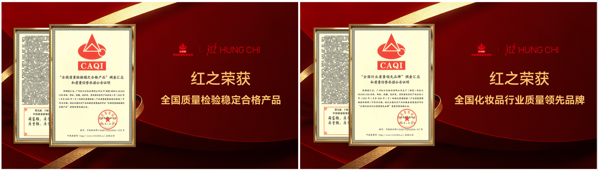 2025年12月,红之多效净澈卸妆油(不纠结卸妆油)荣获广东省优质化妆品评定委员会认证的「粤妆甄品」称号,成为该评定开办以来首个入选的卸妆类产品;2026年1月,红之以稳定、安全、可信赖的产品品质,荣获中国质量检验协会认证的“全国化妆品行业质量领先品牌”,旗下全线产品更斩获“全国质量检验稳定合格产品”权威证明,以国家级品质认证,筑牢清洁专家的品质根基,让专业清洁更添安心保障。