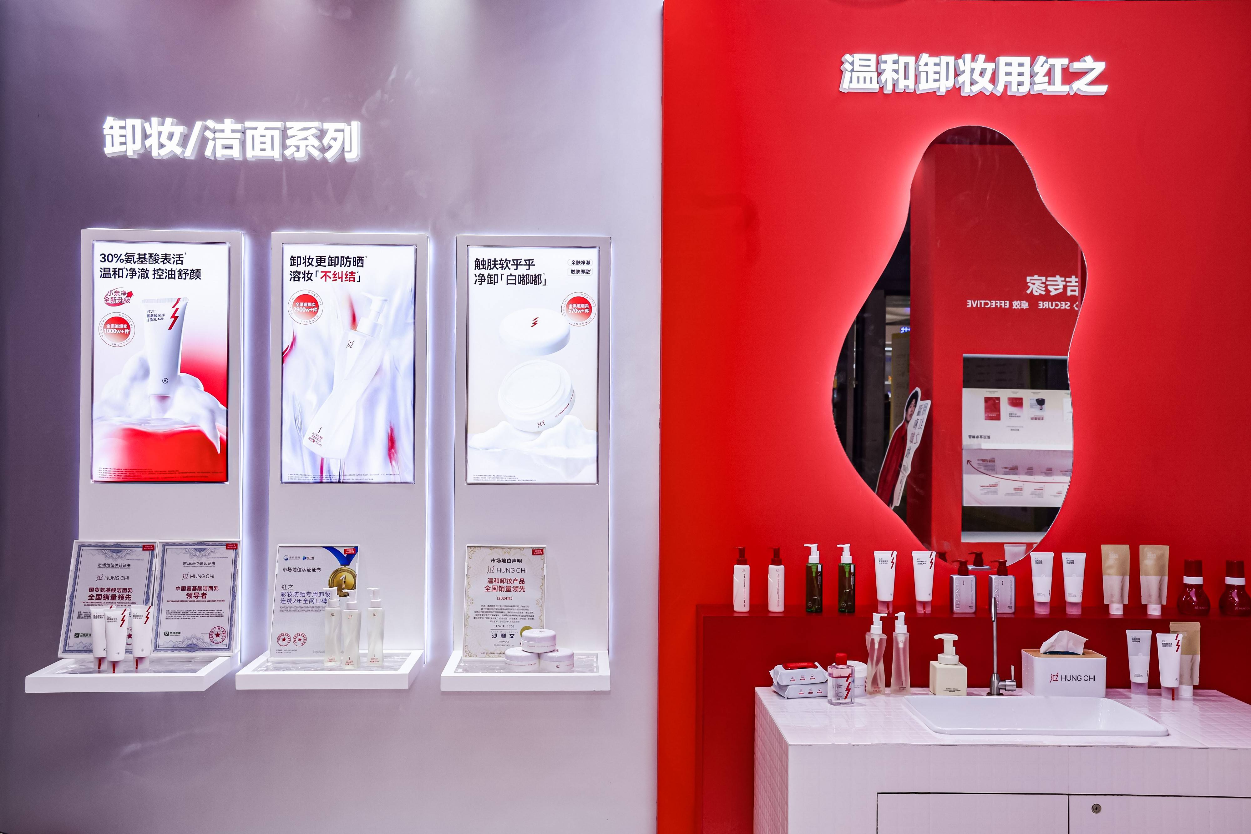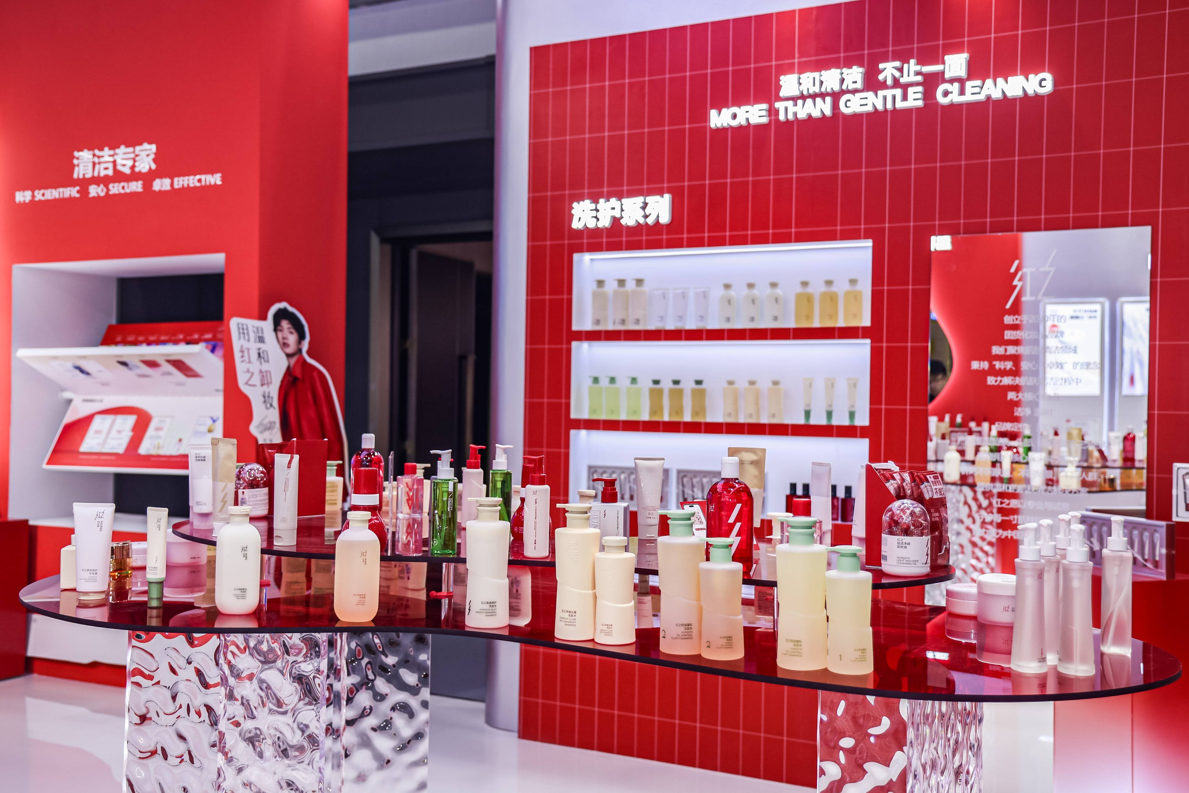 展区内,红之卸妆、洁面、洗护三大系列产品悉数亮相,全方位展现了红之为不同肤质、不同人群、不同场景,量身打造温和肌肤清洁方案的专业坚守。在洁面品类上,红之深谙“一款洁面无法满足所有人需求”的消费痛点,以专业肤质研究为基础,针对干皮、油皮、敏感肌、油痘肌等不同肤质,及晨间清洁、深度清洁等不同场景,围绕“温和清洁”核心,打造了丰富的洁面产品线。从氨基酸洁面乳到“懒人”洁面泡沫、从祛痘洁面到植酸清洁泥膜,实现肤质与场景的双重精准匹配,让每一位消费者都能在红之找到专属自己的洁面选择,真正做到“千人千面,各有适配”。