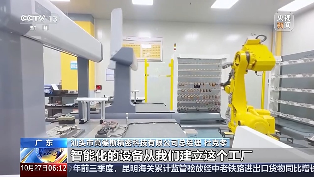 汕头市高德斯精密科技有限公司模具研发中心总监 程徐晋:现在我们大部分的客户都是定制件,2D来说就是直接用量具可以剪出长宽高,3D曲面直接剪是剪不出来的。我们2D尺寸大概能控到0.01毫米以内,3D现在做到0.005毫米,基本翻了一倍的尺寸精度控制。